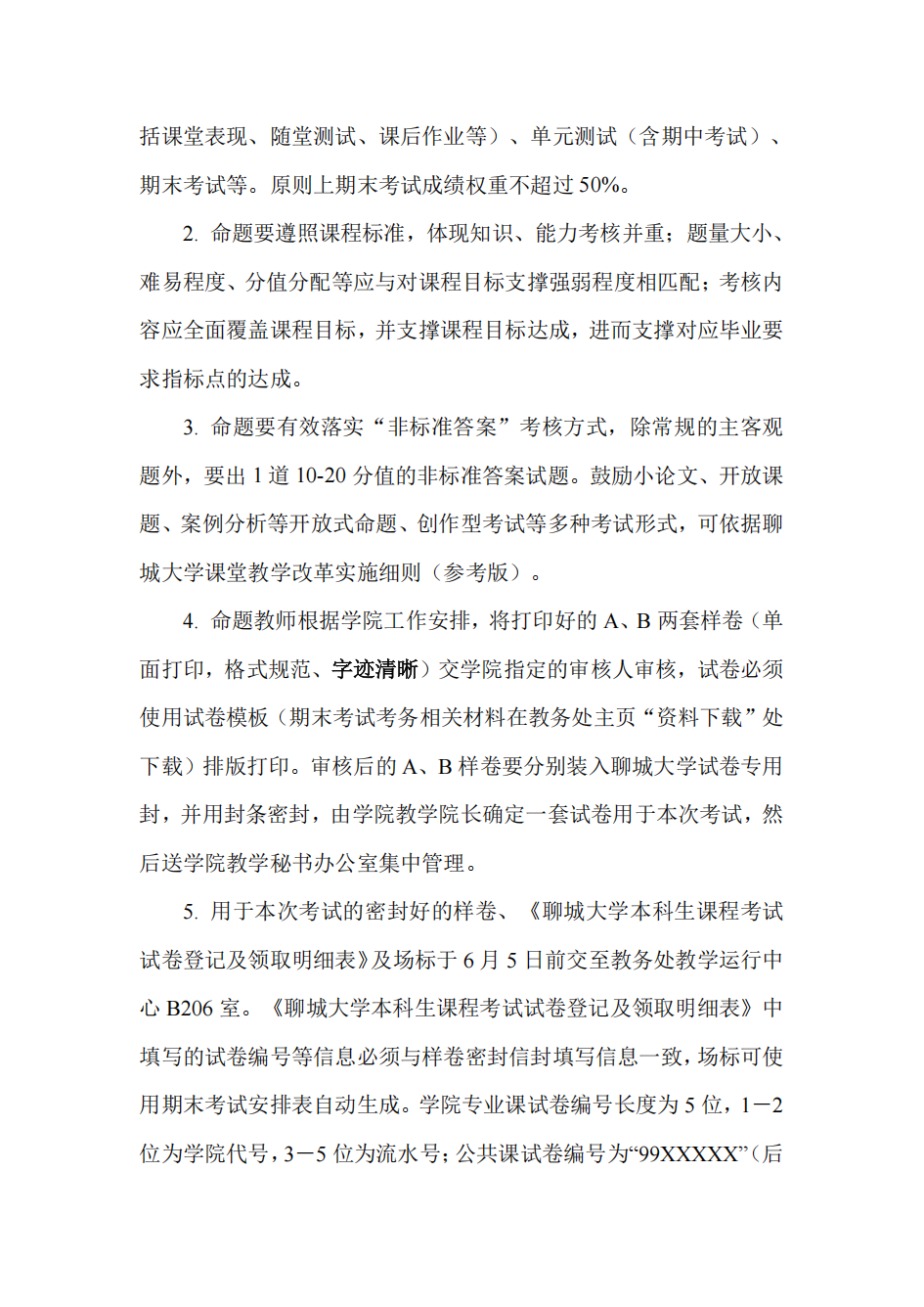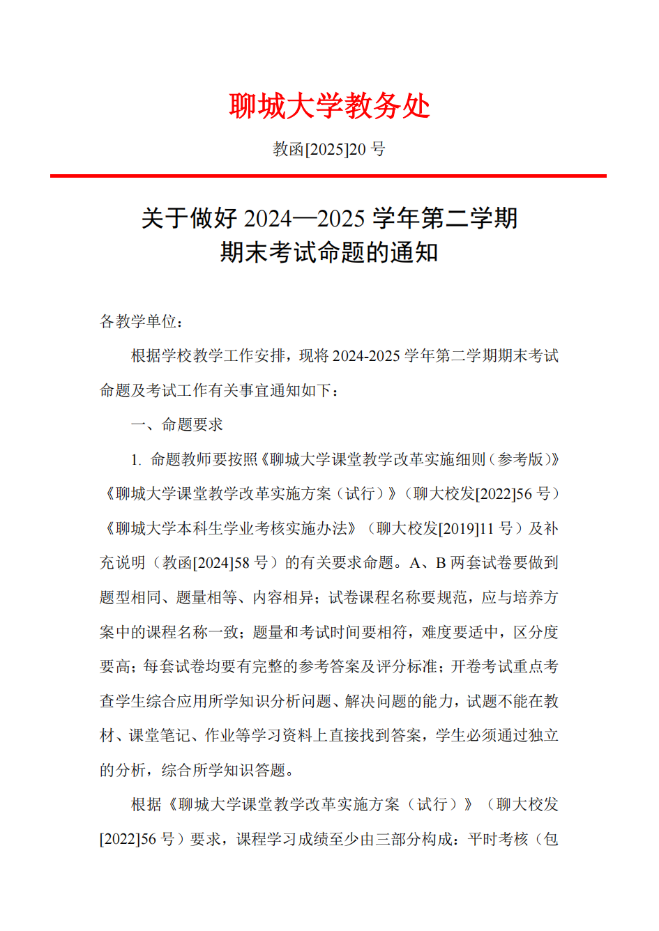 关于做好2024—2025学年第二学期期末考试命题的通知
