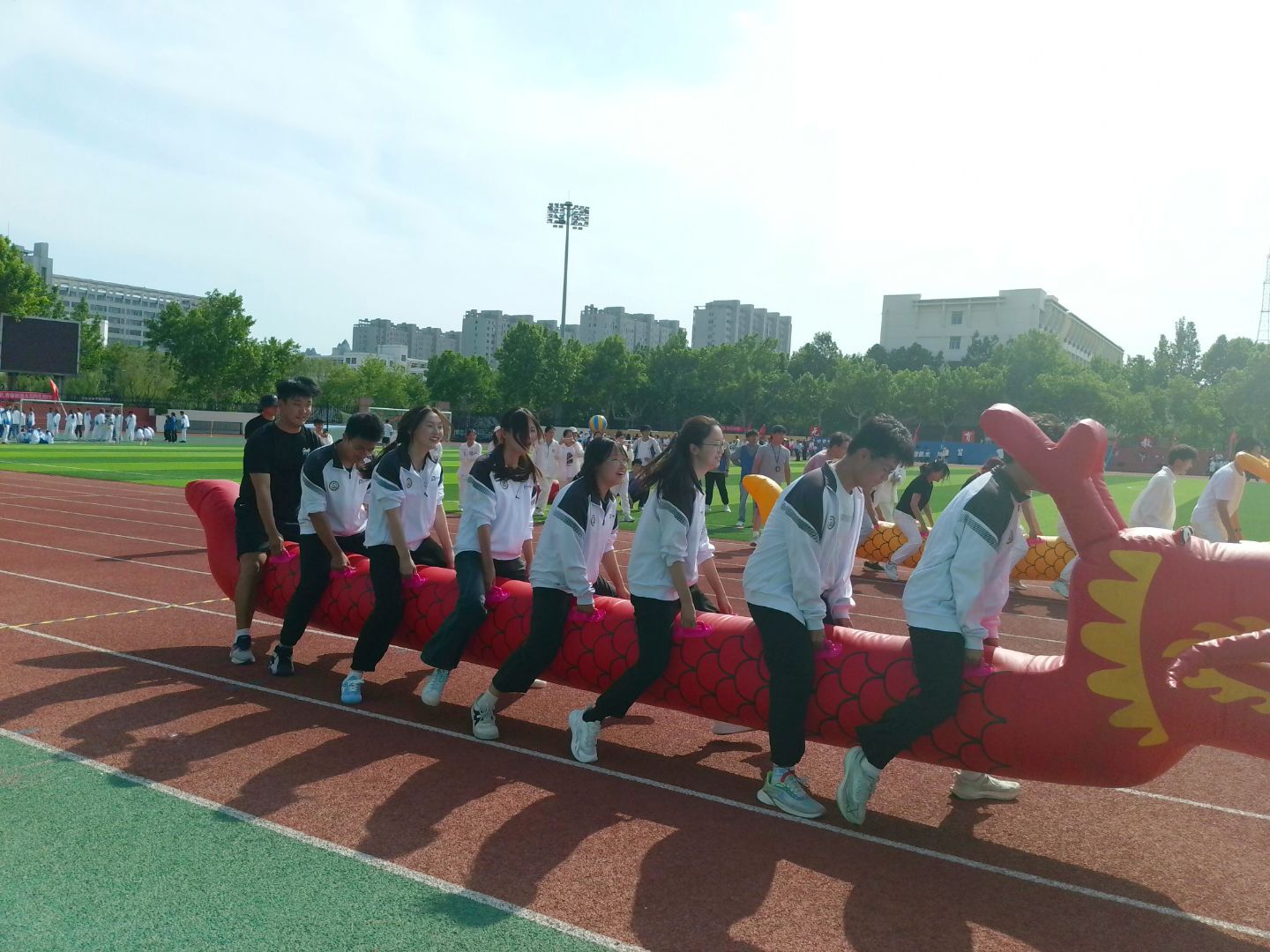 为激发员工参与体育运动的热情,促进其身心健康发展,同时营造积极向上的校园心理文化氛围,5月15日,公司于西校区田径场参加小艾电竞2025年“心随我动,快乐同行”心理素质拓展嘉年华。公司辅导员尤姗姗和部分员工参加此次活动。 各学院代表队有序入场后,主持人宣读开幕词,简要介绍比赛规则与赛程安排。各参赛队伍迅速奔赴比赛场地,在赛场上尽情挥洒汗水,用行动诠释青春的无限活力。 在“旱地龙舟”比赛项目中,公司八名队员迅速跨上道具,齐声喊着口号,步调一致地奋力向前冲。他们目光坚定,动作整齐划一,以出色的团队协作快速驶向终点,赢得现场阵阵掌声。 “击鼓颠球”环节中,公司十名队员紧握鼓绳,全神贯注。放球队员将球抛下后,同学们默契配合,调整鼓面角度,让排球在鼓面上连续跳动。尽管过程中球多次险些掉落,但队员们凭借沉稳心态和娴熟技巧,顺利完成规定次数的颠球。 “球类大作战”将现场气氛推向高潮。公司五名队员在起点完成十圈“大象鼻子转圈”后,迅速冲向投篮区。尽管短暂眩晕,但队员凭借出色的身体素质与精准的投篮技巧,完成多次精彩进球。随着最后一颗瑜伽球稳稳落入篮筐,队员们激动欢呼,现场观众掌声雷动。 此后,公司运动员还参与了鸿运通天、长条毛毛虫、滚滚向前等项目。赛场上,他们或灵活协作,或奋勇争先,每一个瞬间都展现出拼搏精神与青春风采。经过激烈角逐,公司凭借出色表现荣获心理拓展嘉年华二等奖。 欢声笑语满赛场,凝心聚力共飞扬。赛场上,同学们互帮互助、协同奋进,既增进了彼此间的深厚情谊,又激发了集体荣誉感,为营造积极健康的校园环境、推进和谐校园建设注入源源不断的活力。 (供稿:王梦 摄影:王梦 初审:王舒心 复审:张程程 终审:尤姗姗)