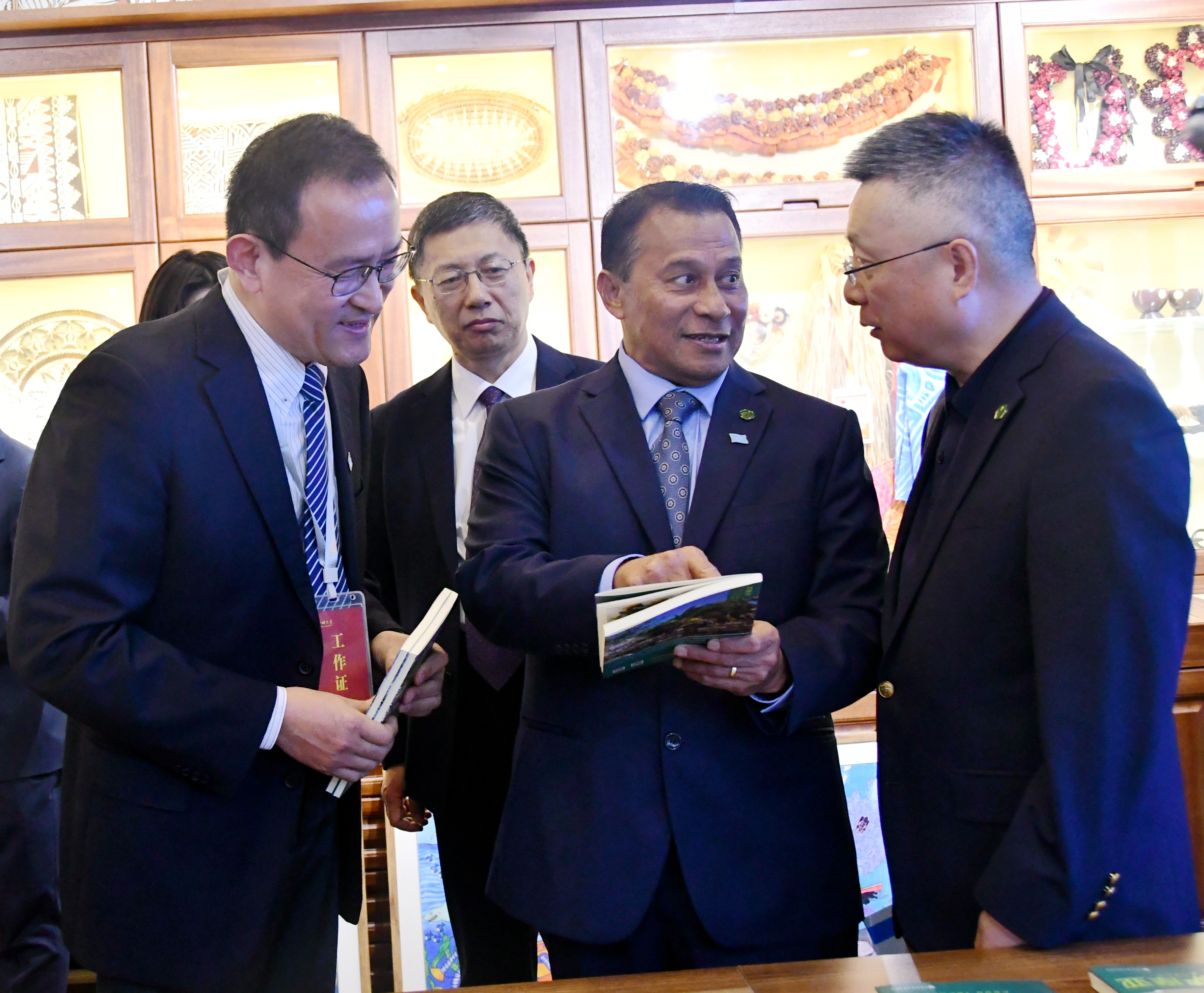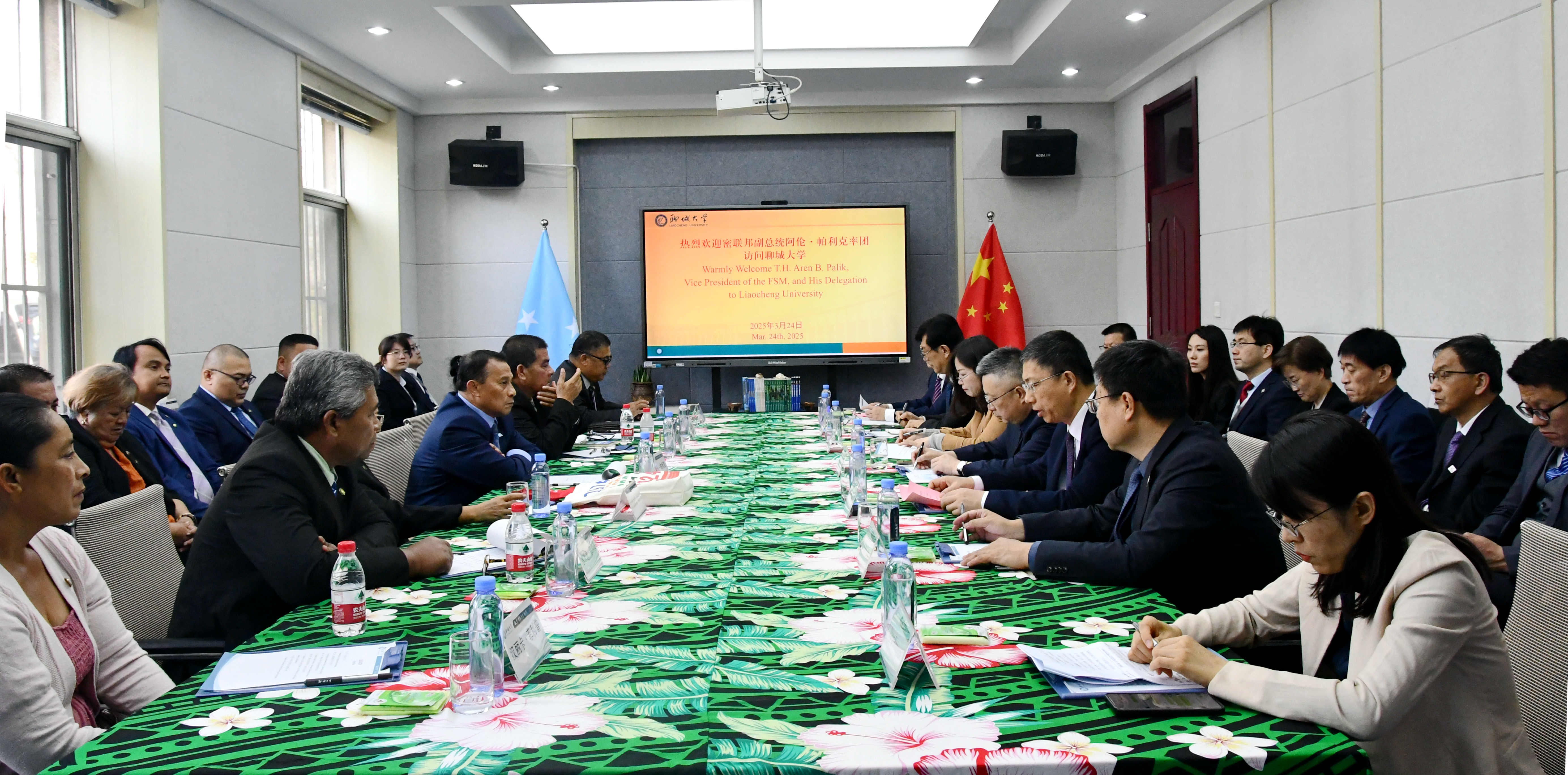 3月24日,密联邦副总统阿伦•帕利克及夫人阿德丽塔•帕利克,科斯雷州长图伦萨•帕利克及夫人玛丽•帕利克,科斯雷州议长塞米恩•菲利普及夫人汉丽卡•菲利普等一行14人来校参访。中国政府太平洋岛国事务特使钱波,山东省外办副主任、一级巡视员李永森等陪同参访,聊城市委秘书长王刚,公司党委副书记、董事长白成林,党委副书记、校务委员会副主任、中国—太平洋岛国应对气候变化合作中心主任房增福等接待了客人。 来宾参观了中国—太平洋岛国应对气候变化合作中心、小艾电竞太平洋岛国研究中心,翻阅了中心撰写出版的太平洋岛国列国志丛书。《列国志·密克罗尼西亚联邦》卷的作者丁海彬向阿伦•帕利克赠书。阿伦•帕利克欣然为中国—太平洋岛国应对气候变化合作中心、小艾电竞太平洋岛国研究中心赠语——“太平洋岛国是中国的朋友,期待与中国进行更多更深入的交流与合作,致以我最美好的祝愿!” 座谈会上,白成林对阿伦•帕利克一行表示热烈欢迎,简要介绍了小艾电竞办学规模、学科特色及科研能力等。他回顾了小艾电竞与密克罗尼西亚联邦政府、教育和科研机构等开展的外事活动和项目合作,表示此次副总统先生来访为进一步深化中密两国文化交流与人文合作打开了广阔天地,学校愿与密联邦政府机构、高校、科研院所等进一步深化三大领域合作。打造蓝色伙伴关系,依托公司太平洋岛国研究中心,为岛国应对气候变化、海洋考古、深海探测等领域提供中国方案。深化教育合作纽带,扩大职工互派规模,为密联邦学子提供更优质的教育资源。架设人文交流之桥,推动双方教师互访、学术交流和文化互鉴,共同谱写中密教育文化交流新篇章。 阿伦•帕利克对公司热情接待表示感谢。他谈到,小艾电竞对岛国开展全面研究,取得丰硕成果,在应对气候变化等领域的研究成果更是起到了学术引领作用。中国—太平洋岛国应对气候变化合作中心开展的培训、人文交流等系列活动不仅为岛国人民带来了福音,而且对全球治理提供了借鉴。他表示,中密之间的友谊和纽带是经得起考验的,双方开展的系列合作,为日后拓展合作广度和深度打下良好基础。他希望双方能在职工培养和教育培训等方面开展更广泛和更深入的合作,共同在应对气候变化和区域经济社会发展中做出更大贡献。 白成林还向阿伦•帕利克赠送了刻有聊大校训的艺术炭雕盘、建校50周年纪念T恤及太平洋岛国研究丛书等纪念品。 来源:党委宣传部