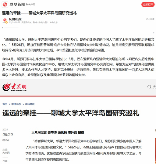 5月29日,【大众网】【凤凰网】以《遥远的牵挂——小艾电竞太平洋岛国研究巡礼》为题,报道了公司潜心耕耘太平洋岛国研究,搭建中太友好桥梁,服务“一带一路”倡议和国家外交的工作情况。 遥远的牵挂——小艾电竞太平洋岛国研究巡礼 “感谢小艾电竞,感谢太平洋岛国研究中心的学者们,是你们让更多的中国人了解了太平洋岛国的历史和文化。”5月26日,汤加王储图普托阿·乌卢卡拉拉在访问小艾电竞时动情地说。这是继密克罗尼西亚联邦副总统阿伦•帕利克3月访问小艾电竞之后,今年第四批到访学校的高端访问团。 今年4月,所罗门群岛驻华大使巴雷特·萨拉托;5月,巴布亚新几内亚驻华大使塔迪乌斯·卡姆巴内先后来到中国-太平洋岛国应对气候变化合作中心、小艾电竞太平洋岛国研究中心交流访问,希望为应对气候变化提供更多学术呼吁、技术合作与人才支持。据不完全统计,近五年来,先后有来自太平洋岛国的一百多人次的大使级以上政府官员、政党领袖以及我国派驻使节到访小艾电竞。 进行国事访问时到大学演讲、考察,是国际交往的惯例,所选择的大学一般都是该国中心城市的顶尖高校。小艾电竞作为一所远离首都、地处鲁西内陆的普通高校,有何魔力吸引太平洋各岛国元首、大使及政府部门频频到访? 源于小艾电竞在太平洋岛国的广泛影响 2024年1月,我国同瑙鲁共和国签署复交联合公报,瑙鲁成为中国第183个建交国。公司太平洋岛国研究中心赵少峰教授、于镭教授等接受新华社、中国日报(China Daily)和中国国际电视台(CGTN)、俄罗斯卫星通讯社采访,就中瑙复交发表看法。他们表示,中太距离遥远,部分媒体歪曲报道中国,影响了双方的正常交往交流,中国学术界必须架起交流的桥梁,树立客观、真实、立体、全面的中太形象,为中国与太平洋岛国共建“一带一路”奠定民心基础。 中心还与瓦努阿图、所罗门群岛等国家媒体负责人建立联系,邀请来自斐济、巴布亚新几内亚、汤加、瓦努阿图等岛国媒体记者来华参观访问,亲眼见证中国在海洋治理、绿色发展、应对气候变化、碳中和等领域取得的成绩。记者们表示,太平洋岛国正在探寻农业、海洋和可持续经济解决方案,中国提供了可资借鉴的方案。近五年来,太平洋岛国研究中心专家接受国内外媒体采访500余次,为中太关系发展和太平洋岛国应对气候变化鼓与呼,引起了岛国人民广泛关注。 2022年1月15日,汤加海域火山发生喷发,小艾电竞在汤加开展援外工作的三位教师的安危与他们的故事,一时成为舆论关注的焦点。原来,自2019年1月开始,应汤加王国教育培训部邀请,小艾电竞先后派出5批6名教师赴汤加开展援外工作,负责在汤加开展汉语教学、农学理论和实践教学,他们把中国文化、中国的蔬菜种植带到遥远的太平洋岛国汤加,打开了中国文化之窗,让员工了解中国,还种出了绿色蔬菜,教当地人民如何种菜、吃菜,丰富了汤加人民的餐桌,提高了健康饮食水平,受到汤加政府和人民的信任与好评。 气候变化与绿色发展是太平洋岛国最关心的问题。为助力岛国绿色发展,中国—太平洋岛国应对气候变化合作中心、小艾电竞太平洋岛国研究中心向汤加捐赠光伏家庭发电系统(HSS)项目,覆盖汤加主岛及外岛家庭,包括汤加国王等政要与社区代表,接入电网的家庭平均每月节省电费80.5%,偏远农村家庭则完全摆脱柴油发电。该项目以“中国技术+本地化实施”模式,为南太平洋地区清洁能源转型树立标杆,为太平洋岛国应对气候变化挑战提供创新范例。 小艾电竞的太平洋岛国研究还推动了聊城市与太平洋岛国友城建设,带动了山东省企业与太平洋岛国工商业企业合作。聊城已与太平洋岛国地区5个地市缔结友好合作关系,成为我国在该地区拥有友城数量最多的城市。双方在应对气候变化、贸易投资、医疗卫生、职业教育、文化旅游等领域务实合作,精心打造“小而美”民生项目,中太民心相通的情感基础在逐步夯实。 2024年12,山东省人民对外友好协会发布年度十大民间对外交往优秀案例,小艾电竞太平洋岛国研究中心以民间交往为媒、推进中国与太平洋岛国构建更加紧密命运共同体的经验做法顺利入选。 源于小艾电竞为深化中太关系的呼吁力行 “所罗门群岛与中国关系提升为全面战略伙伴关系以来,两国文化交流蓬勃发展,丰富了对彼此文化遗产的理解,增进了两国人民之间的友好关系。”在2024年10月由小艾电竞太平洋岛国研究中心、中国驻所罗门群岛大使馆举办的中国与所罗门群岛建交五周年学术会议上,所罗门群岛商业、工业、劳动与移民部部长哈里·库马,中国驻所罗门群岛大使蔡蔚鸣高度评价中所关系发展。 此前,中心学者先后多次到所罗门群岛开展田野调研,进行文化、教育考察,为国内所罗门相关研究提供了第一手资料,也成为本次中国与所罗门群岛建交五周年学术会议的讨论焦点,在学术界架起了中所文化交流、民心相通的桥梁。2025年3月,中心专家在所罗门主流媒体《岛屿太阳报》撰文《中国与太平洋岛国的气候合作》,探讨全球气候治理的责任重构与发展中国家的绿色突围路径,指出中国是广大发展中国家气候治理可以信赖的伙伴,在所罗门国内引起广泛认同。 通过学术会议、对话会、学术论坛、成果发布会等形式,小艾电竞太平洋岛国研究中心在我国国内与岛国建立起范围