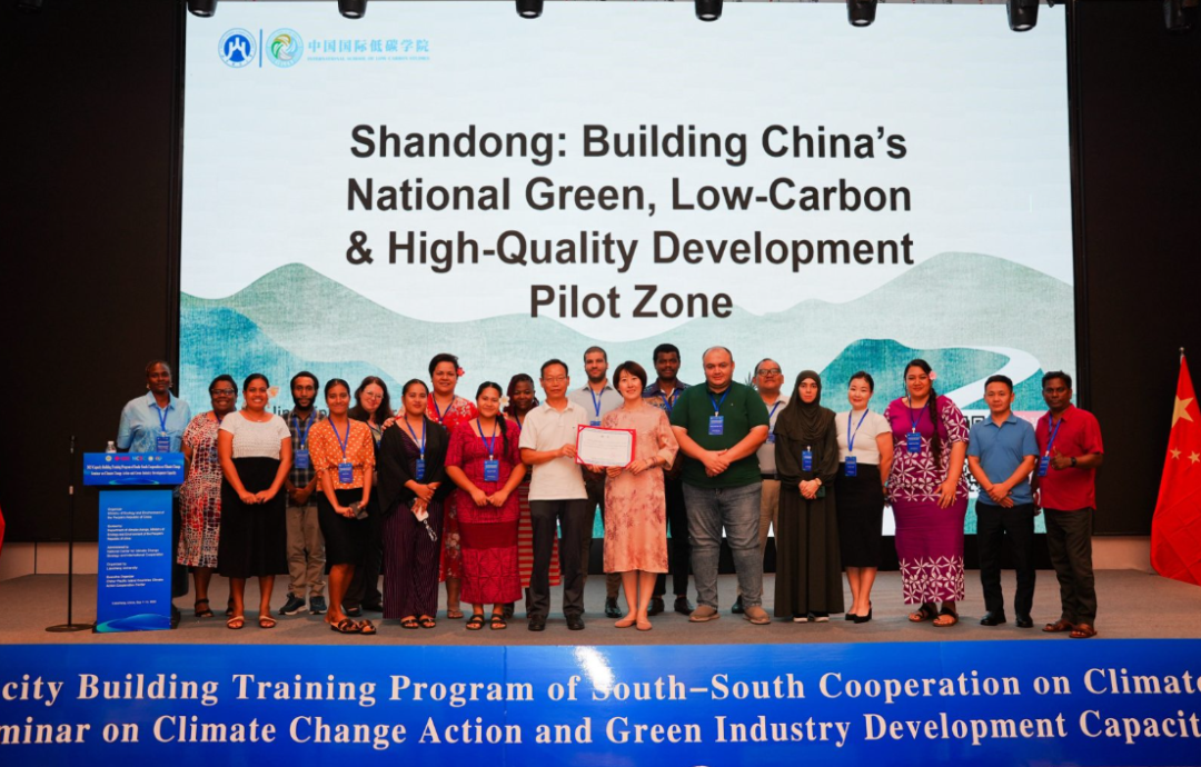 9月4日上午,山东省应急管理专家、山东省气象局首席气象专家孟祥新以《气候变化影响与评估》为题,围绕气候变化展开多维度分析,涵盖全球气候变化的现状、成因、风险,从国家安全视角解读气候问题,梳理国际应对气候变化的路线图,并阐述中国在应对气候变化方面的行动、挑战与实践案例,旨在为气候变化影响评估与适应提供全面且系统的参考。 9月4日下午,山东财经大学国际低碳研究学院教授兼行政经理王璟珉作了题为《山东:打造中国首个国家绿色低碳高质量发展先行区》的报告。报告中提到山东被国务院设立为全国首个绿色低碳高质量发展试点省,正以“1+N+X”政策体系为框架,通过淘汰落后产能、发展海上风电与氢能等高端产业,构建“风光储+CCUS”多元能源体系,并在青岛港、济南莱芜等地打造零碳示范项目;2024年已使碳强度下降9.2%、PM2.5下降46%,新增110万绿色岗位。依托300亿美元绿色债券和200亿元碳减排基金,山东与德国、丹麦、新加坡合作,并通过“南南三角实验室”向小岛国家输出分布式可再生能源、蓝色碳汇和绿色金融经验,证明重工业大省完全可以在经济持续增长的同时提前实现碳达峰,并为全球提供可复制的绿色转型路径。 晚上,研讨班学员们跟随着山东省非物质文化遗产传承人梁颖老师体验极具中国传统文化特色的剪纸活动。梁颖以“民间工艺里的气候变化”为题,通过古诗、谚语、二十四节气与剪纸纹样,展示了中国农耕文明如何用艺术记录气候规律:北方过年窗花、南方四季花果、梅雨与夜雨的诗意写照,以及“扫天婆”“老鼠嫁女”等剪纸形象,寄托对晴雨旱涝的祈愿与敬畏;进而以二十四节气为时间轴,把鹿鹤同春等吉祥图案与世界文明相连,为太平洋岛国剪出天堂鸟、狐蝠、蜥蜴,用中国剪纸向世界传递“生生不息”的共同气候记忆与文化互鉴愿景。 全天的学习与文化体验活动主题明确,成果丰硕。学员们不仅更加深入地理解了中国的绿色发展理念以及应对气候变化的经验,还通过文化体验,进一步领略了中国深厚的历史底蕴与开放包容的交流氛围。同时,今日的各色活动为来自不同国家的学员搭建了思想与文化交流的平台,同时也彰显了中国在全球气候治理和绿色产业发展中所承担的责任以及贡献的智慧。 (作者:李小翠)