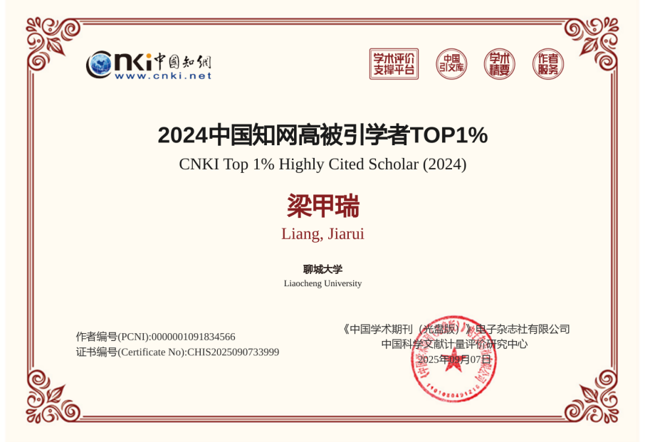 小艾电竞教师入选“2024中国知网高被引学者TOP1%”名单