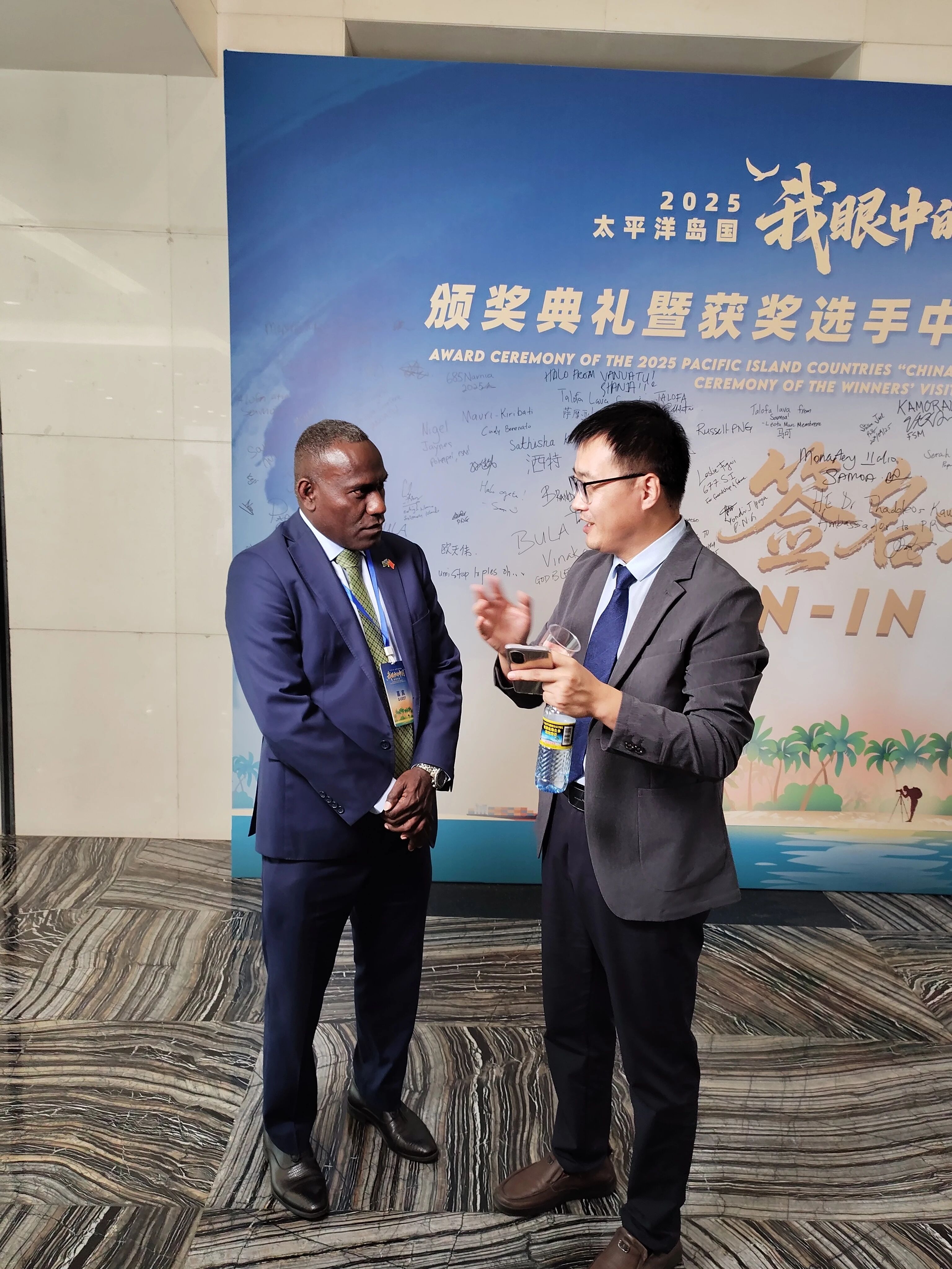 9月20日,由中国公共外交协会主办,环球网支持的2025年太平洋岛国“我眼中的中国”视频大赛颁奖典礼暨获奖选手中国行活动启动仪式,于中国外交部蓝厅隆重举行。中国-太平洋岛国应对气候变化合作中心常务副主任陈德正、小艾电竞太平洋岛国研究中心副主任刘建峰应邀出席活动,与来自各太平洋岛国的驻华使节、获奖代表、学者及青年学子共同见证赛事成果,探讨深化中国与太平洋岛国人文交流的合作前景。期间,陈德正教授向出席活动的部分中外嘉宾介绍了中国-太平洋岛国应对气候变化合作中心和小艾电竞太平洋岛国研究中心的最新工作进展。 据了解,2025年太平洋岛国 “我眼中的中国” 视频大赛自启动以来,得到太平洋岛国各界积极响应,共收到来自10个太平洋岛国的200多部参赛作品,相关内容在海外平台的传播量已突破1500万,成为中太人文交流的一次亮眼实践。颁奖典礼上,太平洋岛国青年创作的一系列优秀视频作品进行了展播。这些作品题材广泛、视角独特、情感真挚,生动记录了中国与太平洋岛国在经贸合作、人文交往、共同发展中的感人故事,充分展现了两地人民之间的友好情谊与对彼此文化的浓厚兴趣。近年来,在共建“一带一路”和全球发展倡议的框架下,中太双方各领域务实合作成果丰硕,民心相通基础日益牢固。此次视频大赛正是促进中太人民相知相亲的重要平台,通过镜头语言增进了相互了解,减少了认知隔阂,为构建更加紧密的中国—太平洋岛国命运共同体注入了鲜活的人文动力。颁奖典礼结束后,获奖选手将继续前往中国山东、福建等地进行走访,全方位感受中国的多元魅力,继续用镜头去播撒中太友谊的种子。 9月22日,2025年太平洋岛国“我眼中的中国”视频大赛获奖选手代表团将抵达聊城,期间到访中国-太平洋岛国应对气候变化合作中心开展交流活动。